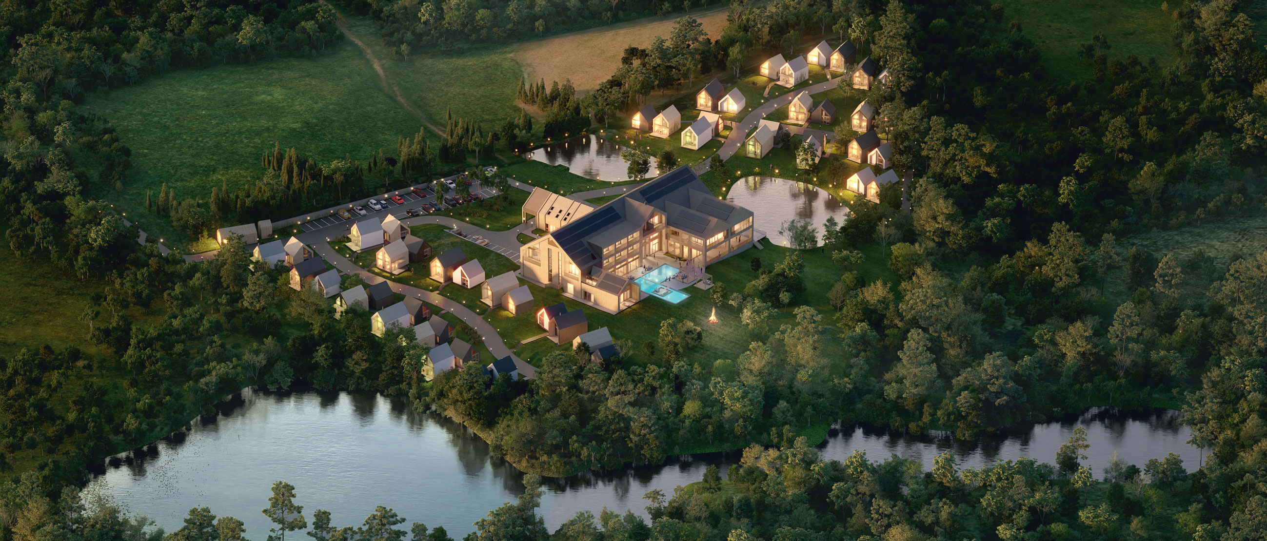 W bliskim sąsiedztwie prywatnego jeziora na terenie Pojezierza Brodnickiego. Pojezierze Brodnickie dumnie nosi miano najczystszego pod względem przyrodniczym regionu w Polsce. To niezwykła kraina wypełniona jeziorami, rzekami i lasem. Naturalne dziedzictwo tego magicznego miejsca stwarza doskonałe warunki dla turystyki aktywnej w harmonii z dziką przyrodą. Podobnym nurtem w wyborze usytuowania sugerowały się inne luksusowe marki jak dr. Irena Eris, Głęboczek, Vine Resort czy Mazuria Arte.