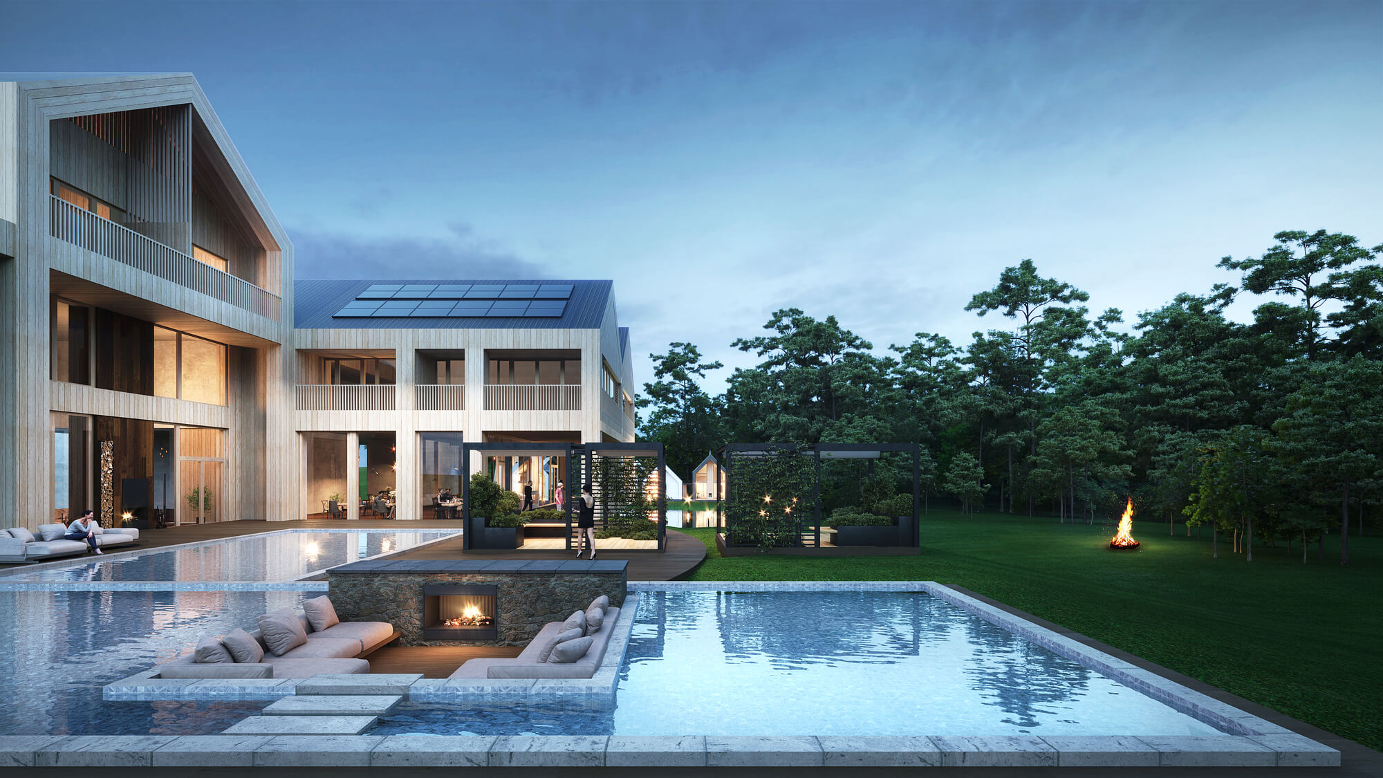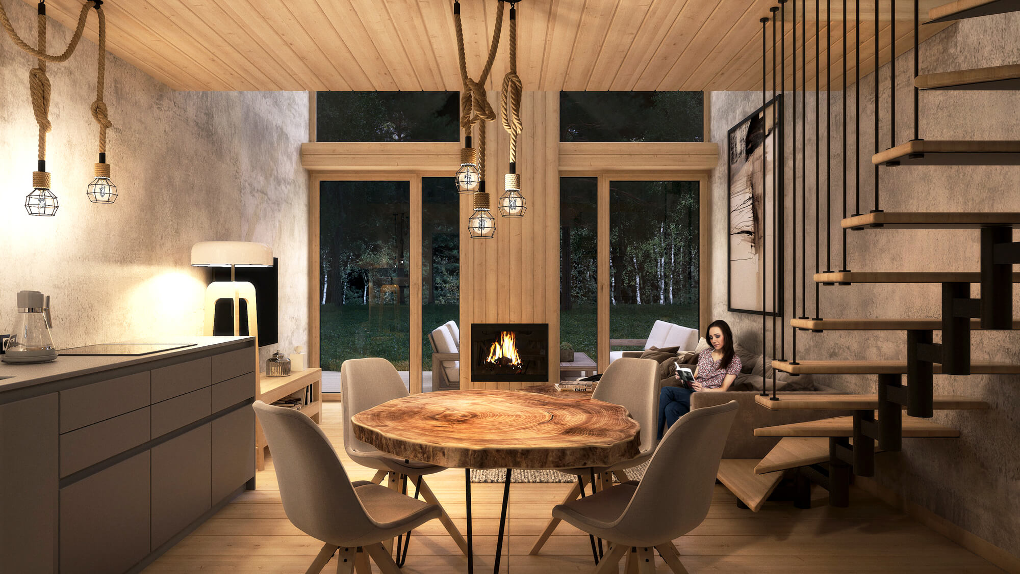- obszerny drewniany taras z kominkiem